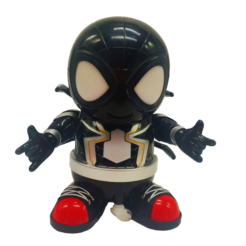Кумедний робот "Людина павук". Танцює, їздить у різних напрямках, грає кілька різних мелодій. Очі, кнопка на грудях і черевики підсвічуються різними кольорами. У комплекті є павучі лапи, які можна прикріпити до роботи. Працює від 3-х батарей АА. Розмір робота: 17х15х9 див.