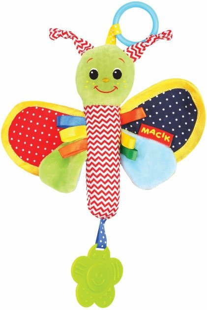 Забавна іграшка створена для наймолодших «дослідників». Малюки будуть в захваті. Можна натиснути на дзвінку пискавку, пом'яти шелесткі крильця або спробувати «смачний» прорізувач, доторкнуться до іграшки, і вона почне дзвінко пищати. Метелик приємний і м'який на дотик, тому що виконаний з натуральних слинопоглинаючих матеріалів. Завдяки універсальному кріпленню іграшку можна закріпити на колясці, ліжечку, автокріслі або дугах розвиваючого килимка. Склад: бавовняна тканина; різнофактурні матеріали; швейна фурнітура; звукові елементи; холлофайбер. Розмір: 20х19х4 см. Розмір в упаковці: 23х10х3 см.