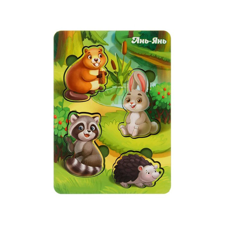 Описание Дерев'яний пазл-вкладиш "Лісові тварини-1" Ubumblebees ПСФ057 PSF057 фон із підказкою