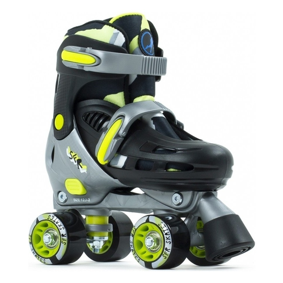 SFR Hurricane III – дитячі ролики квади в оновленому дизайні з розміром, що регулюється. Жорсткий високий черевик відмінно фіксує ногу і підтримує гомілковостопний суглоб. Завдяки відсутності шнурків та двом баклям черевики легко одягати та знімати. М'який та комфортний внутрішній черевик виконаний з урахуванням будови дитячої стопи. Просте регулювання розміру відбувається натисканням кнопки та розсуванням черевика до потрібного розміру. Однієї пари роликів вистачить дитині кілька років.