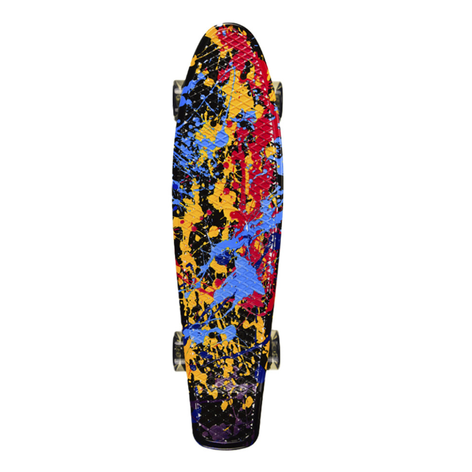 Пенні борд SC20410 - це компактна скейт-дошка з колесами з поліуретану (PU), яка має світловий ефект. Дошка має розмір 56 на 15 см і оснащена одностороннім принтом. Ця дошка є ідеальним вибором для тих, хто хоче швидко та зручно переміщуватись по місту або кататись у скейт-парку. Колеса з поліуретану забезпечують гладкий хід та добре тримають дорогу, а світловий ефект додає додаткової яскравості і стилю.