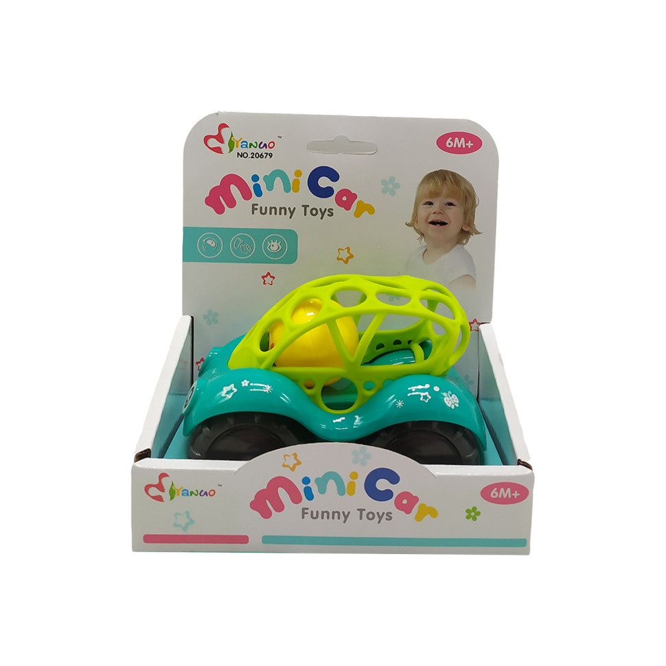 Мила барвиста машинка підійде діткам від 6 місяців. Усередині гумової сфери знаходиться брязкальце у вигляді кульки.