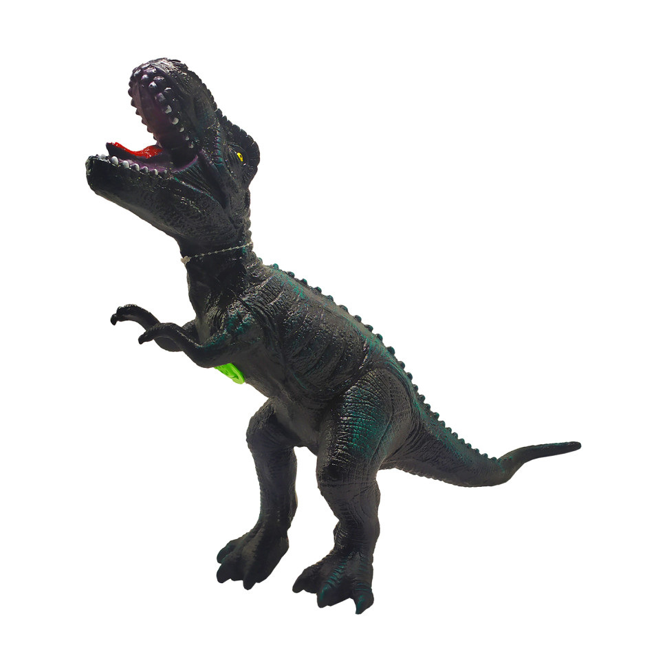 Ігрова фігурка динозавра виготовлена з високоякісної гуми. При натисканні фігурка видає звуки. З іграшкою можна придумати багато цікавих ігор, тварина стане найкращим подарунком для кожної дитини. Виготовлено із якісних матеріалів, безпечних для дітей. Розмір динозавру 52 см Живлення іграшки: 3 батареї типу LR44 (в комплект входять)