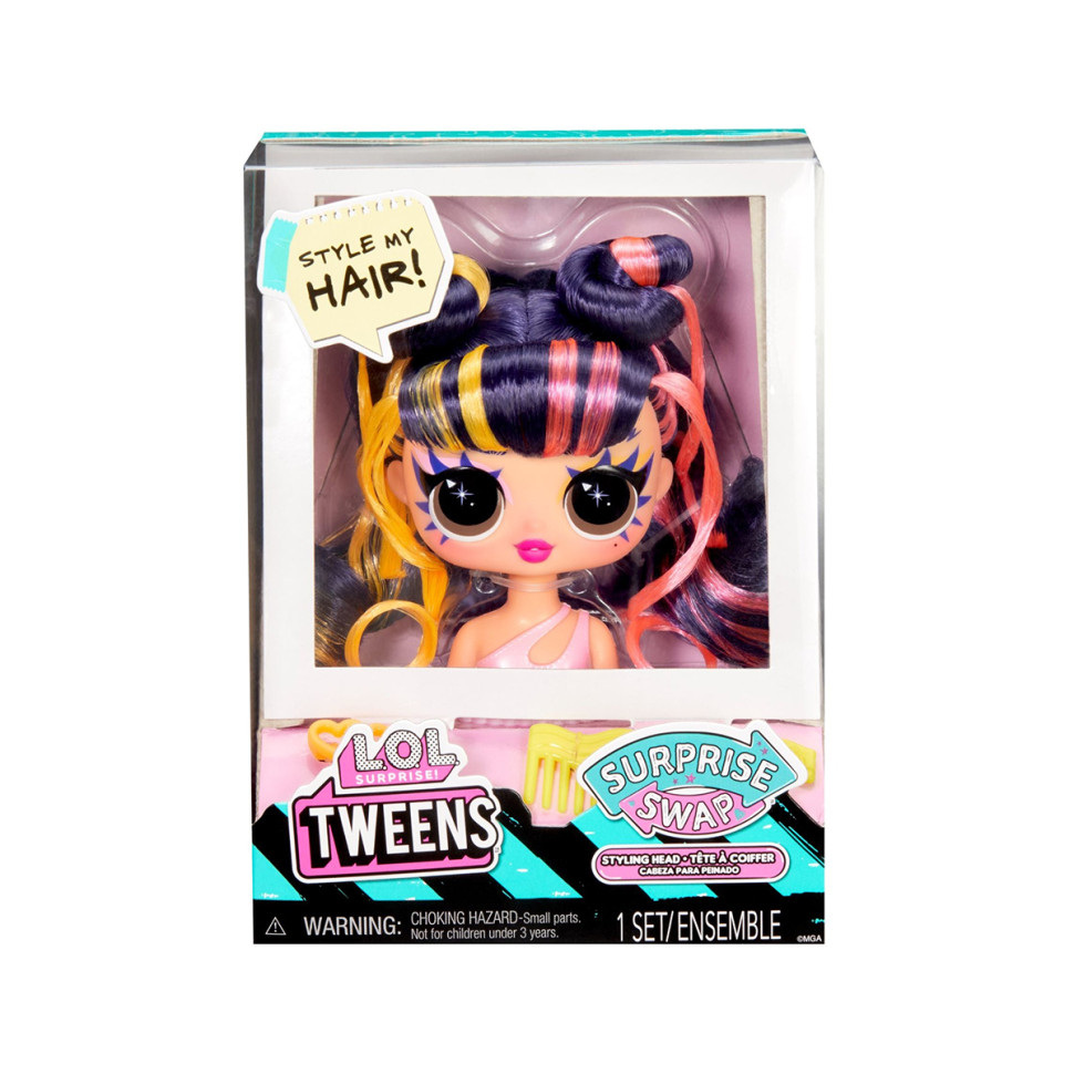 Знайомтеся з лялькою-манекеном L.O.L. SURPRISE! Tweens серії 'Surprise Swap' Змінюйте зачіску вашої ляльки, експериментуйте з її стилем та беріть її завжди з собою! Перед грою потрібно помити волосся лялечці, щоб змити лак для волосся Манекен зручно носити із собою у сумочці та закріплювати на поверхнях завдяки присосці. Лялька-манекен поєднується з ляльками серії Tweens 'Surprise Swap' Манекеном можна грати окремо від ляльки та створювати нові зачіски! У набір входить: 1 лялька-манекен серії Tweens, 2 аксесуари для волосся, 1 гребінець. Зберіть усю колекцію L.O.L. SURPRISE! Рекомендовано для дітей віком від 3 років.