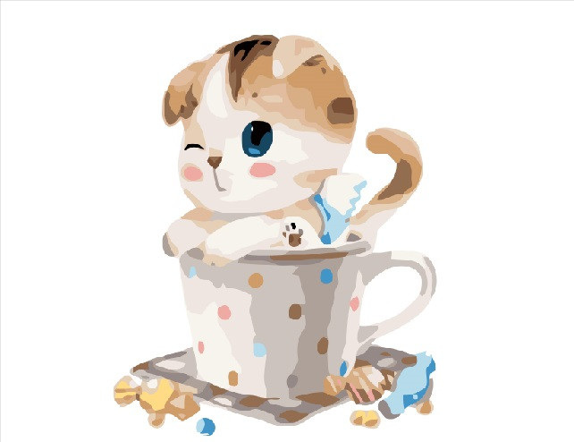 Описание Картина за номерами BrushMe "Кошеня в чашці" 40х50см BS8395