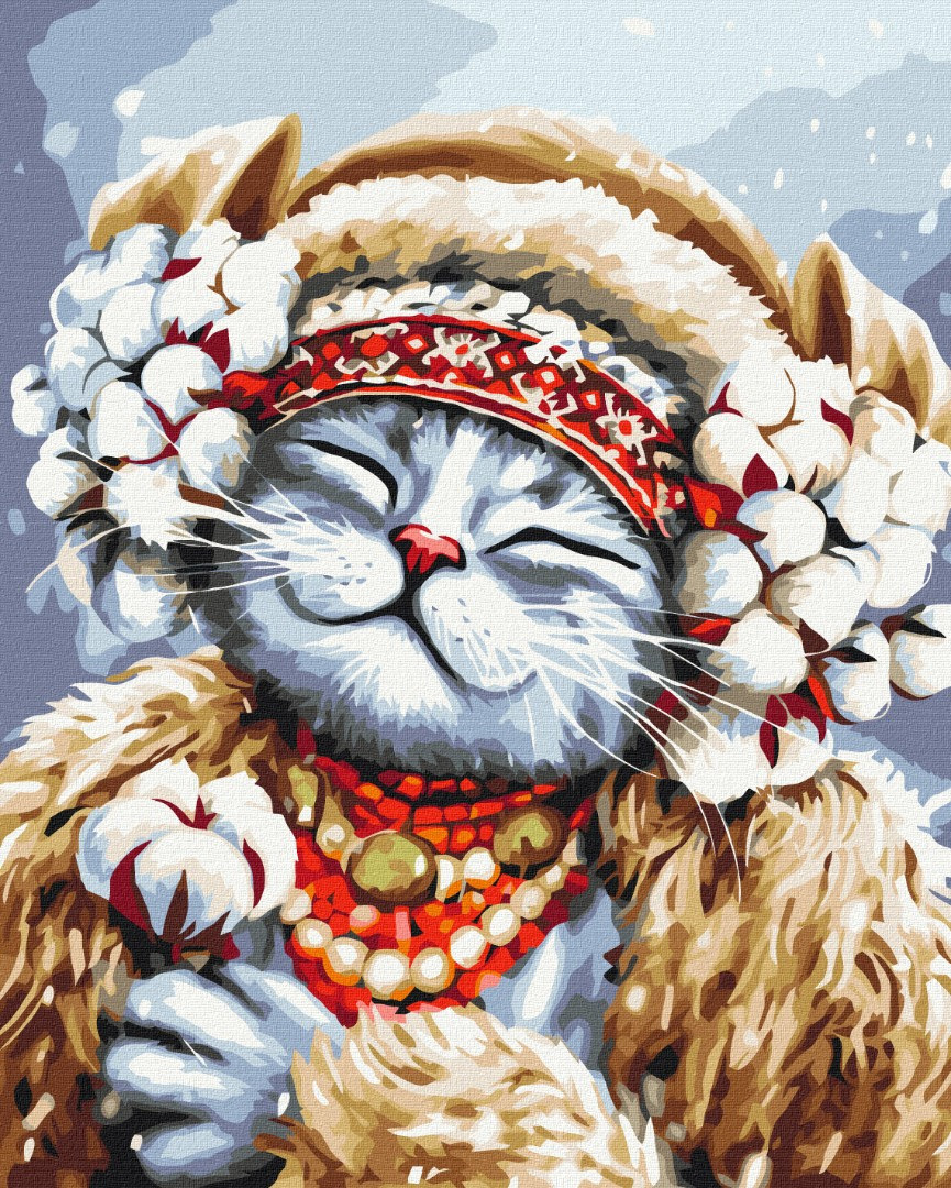 Описание Картина за номерами BrushMe серії Патріот "Кішка Зима" ©Маріанна Пащук" 40х50см BS53412