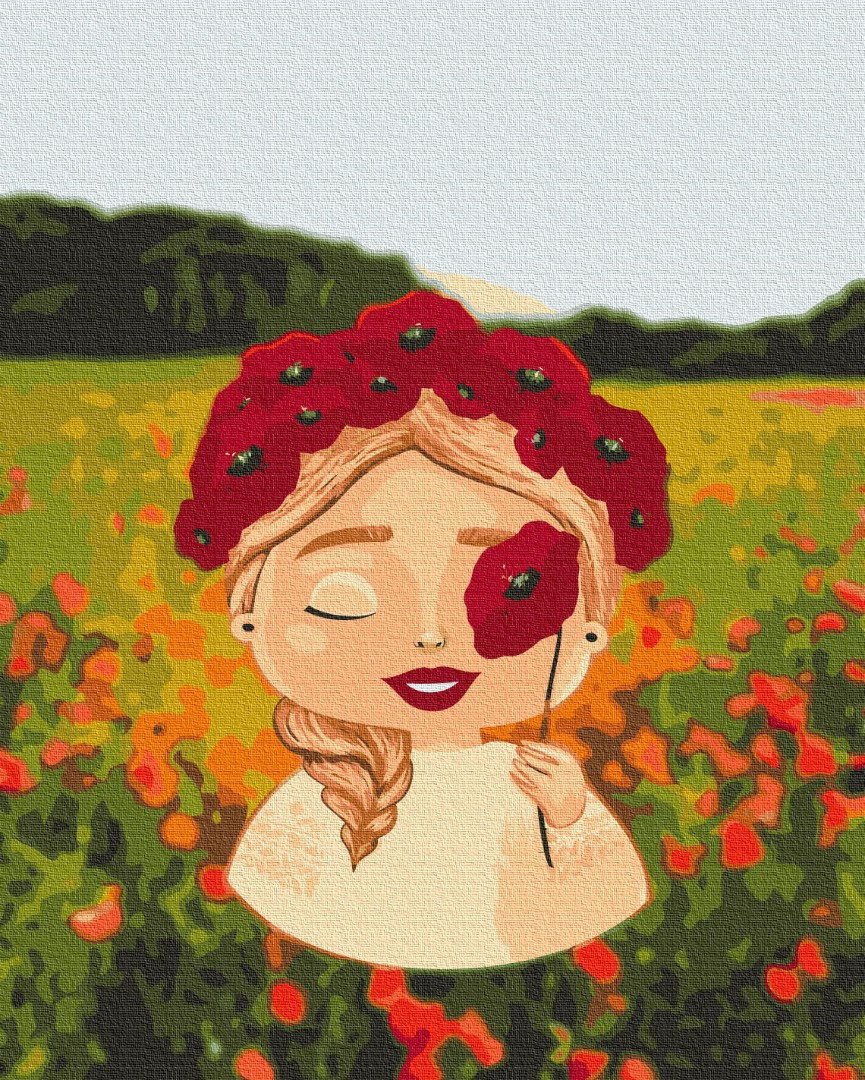 Описание Картина за номерами BrushMe серії Патріот "Маковий віночок ©Лілі Демачкович" 40х50см BS53284
