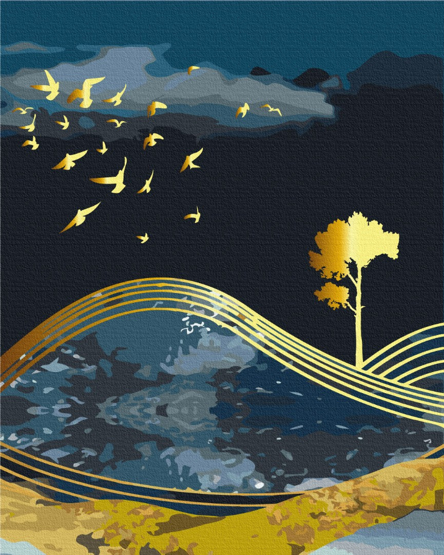 Описание Картина за номерами BrushMe "Птахи ночі із золотою фарбою" 40х50см BS53042