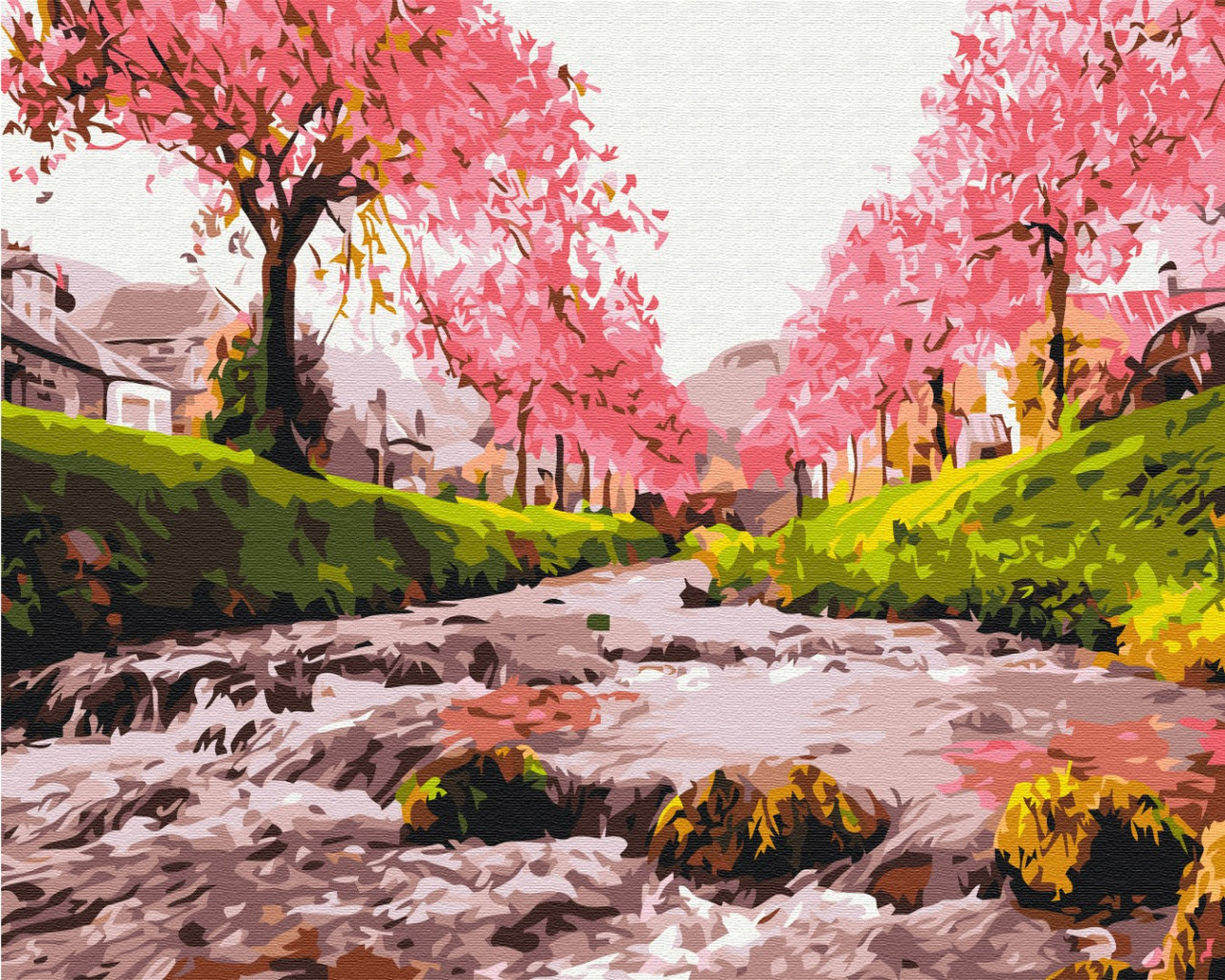 Описание Картина за номерами BrushMe "Річка у сакури" 40х50см BS25577