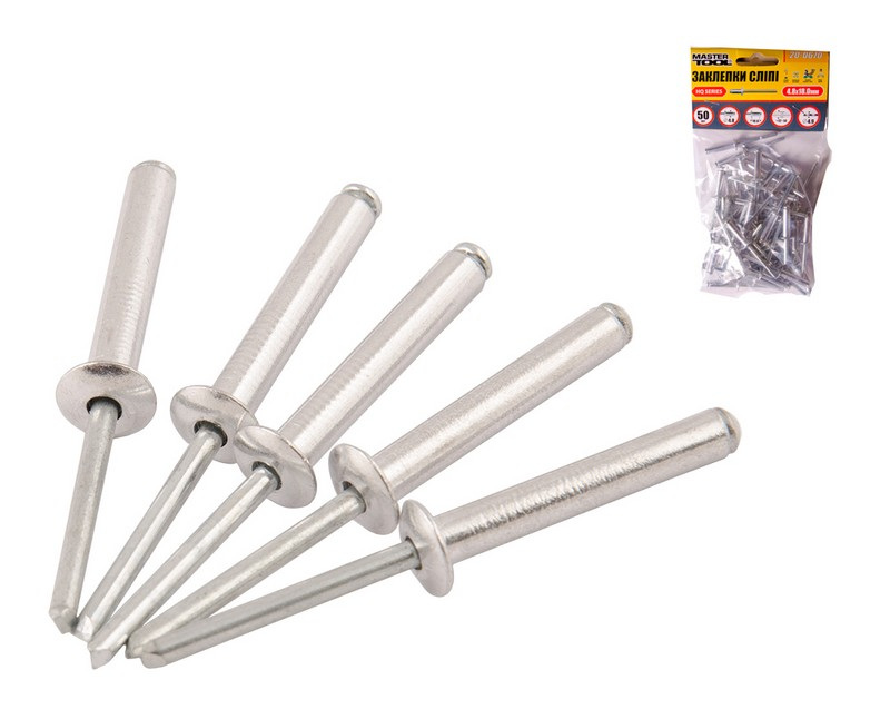 Описание Сліпі алюмінієві заклепки 4,8*18,00 мм 50 шт MASTERTOOL GM (20-0670)