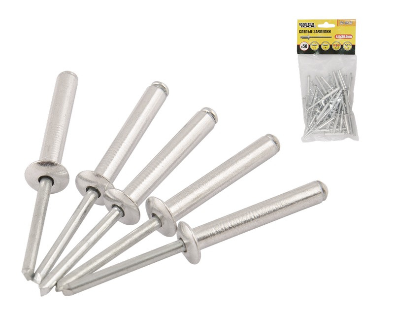 Описание Сліпі алюмінієві заклепки 4,8*30,00 мм 50 шт MASTERTOOL GM (20-0610)