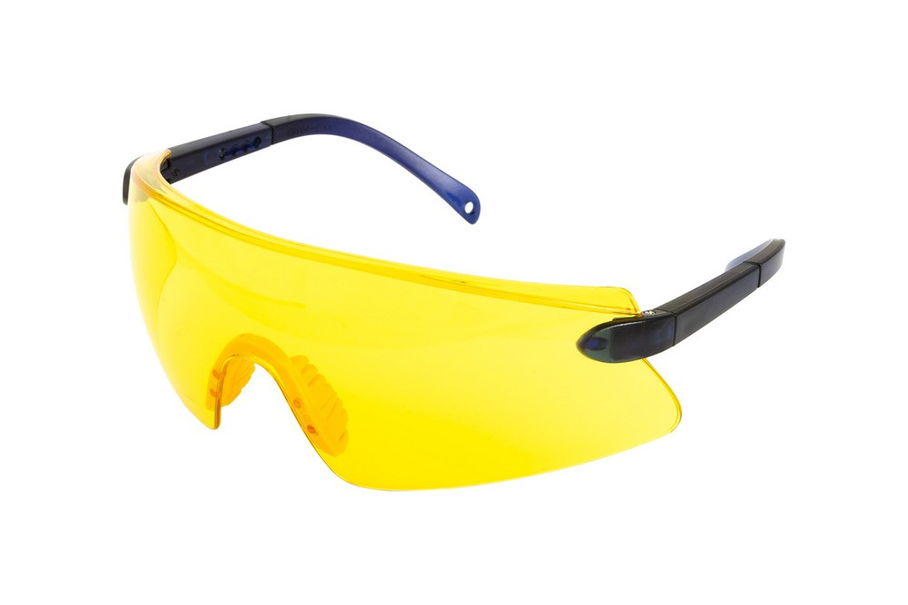 Окуляри відкриті MASTERTOOL GM панорамна лінза ANTI-SCRATCH м'який носоупор регульовані дужки l клас жовті (82-0061)