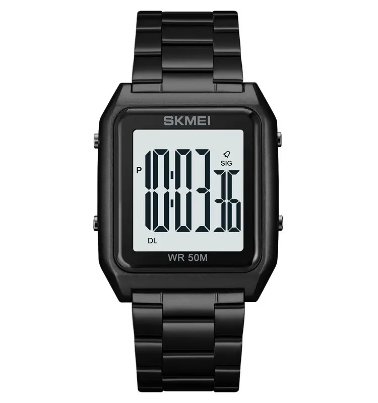 Простий і функціональний годинник SKMEI 1879 підійде як активному хлопцю, так і діловому чоловікові. Великий пластиковий корпус виглядає на руці досить обережно. Цифровий циферблат можна підсвічувати у темряві натисканням кнопки. Ремінець із нержавіючої сталі застібається на зап'ястя класичною розкладною застібкою. Годинник захищений від впливу води за стандартом 5 АТМ. Ця модель показує не тільки час, на дисплеї можна вивести інші параметри: час будильника, дату і день тижня, а також секундомір.