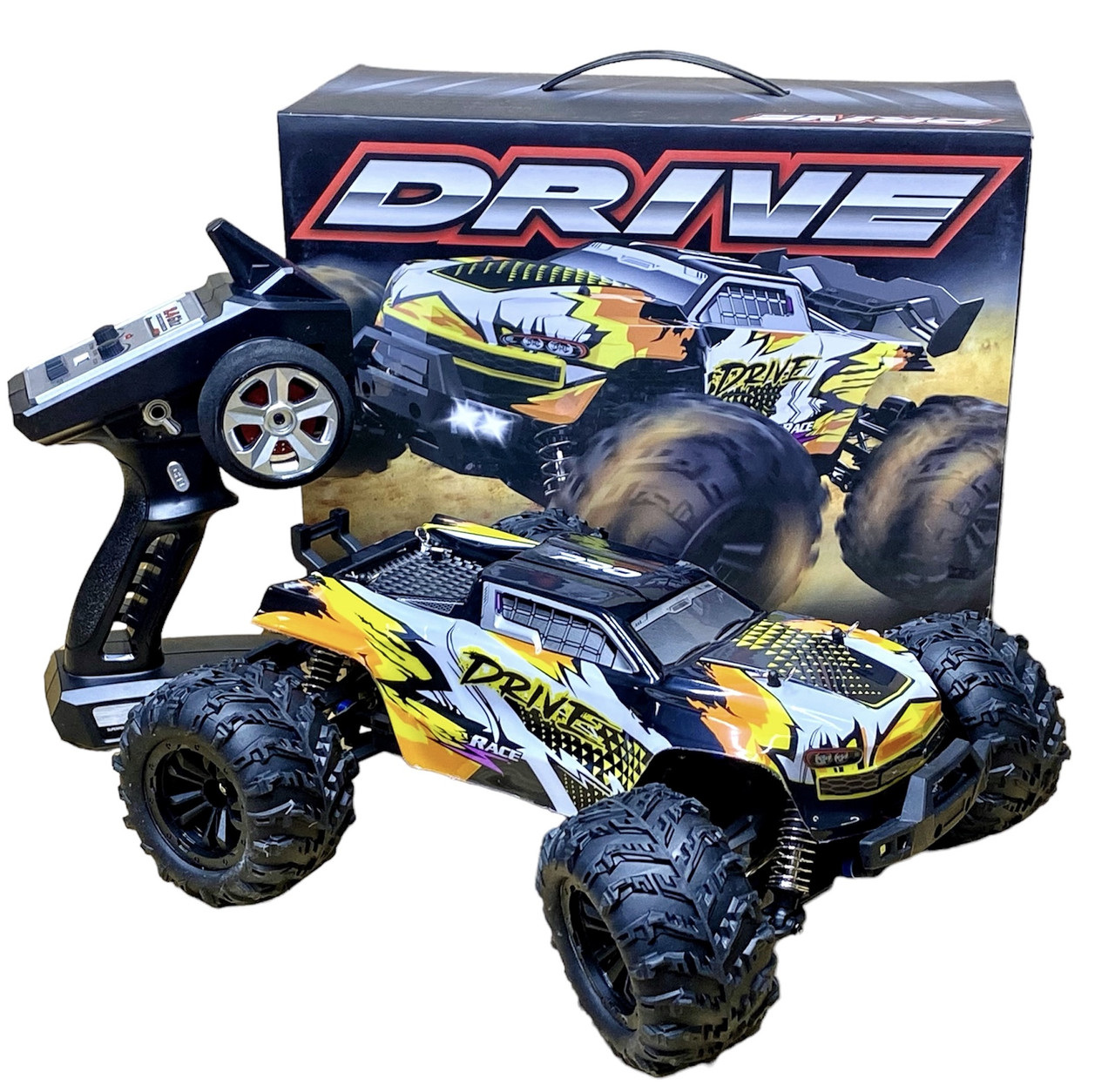 Повнопривідний монстр-трак з передньою та задньою вертикальною пружинною амортизацією відмінно пересувається по різних місцях. Машинка має незалежну підвіску і протиковзкі шини на міцних колесах, завдяки чому легко проїдеться нерівною дорогою, травою або піском.