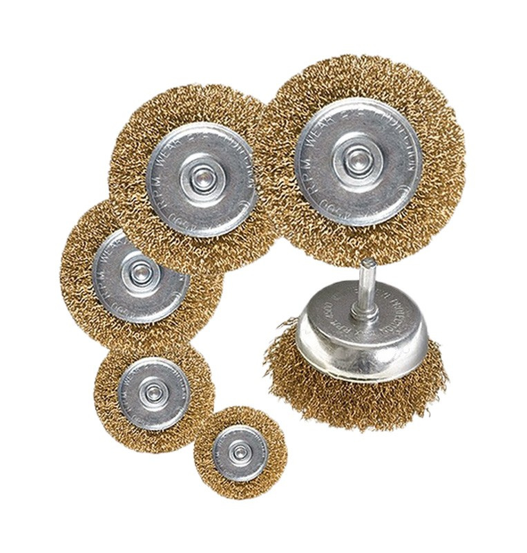 Щітки з латунованого рифленого дроту зі стрижнем 6 шт (торц. 75 мм, диск. 40/50/63/75/100 мм) MASTERTOOL GM (19-9600)