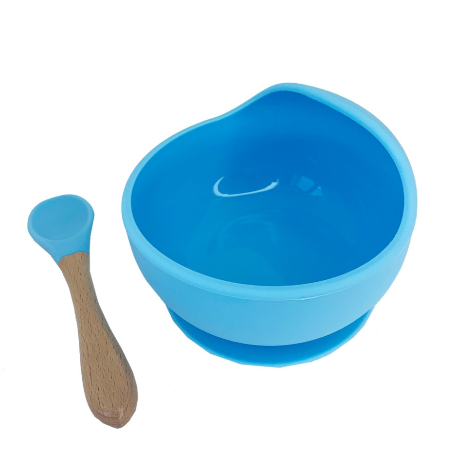 Тарілка на присосці з ложкою та виделкою Mega Zayka MGZ-0109 (Light-Blue) 350 мл