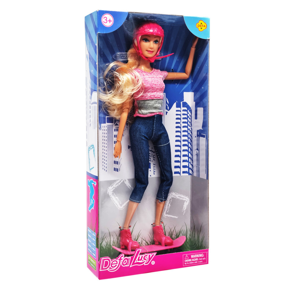 Описание Дитяча лялька на скейті в шоломі Defa 8375 рожевий шарнірна