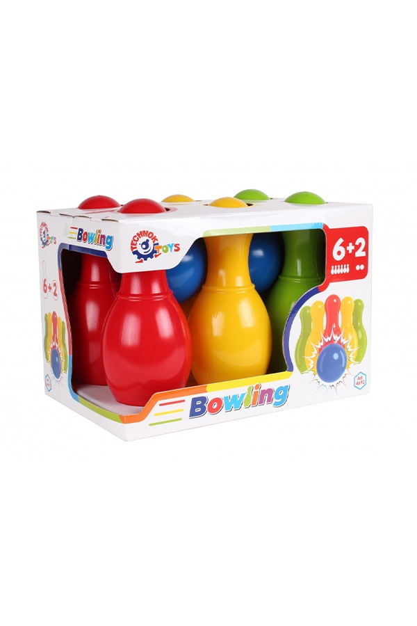 У набір входять: 6 різнокольорових кеглів та 2 яскраві кулі, якими збивати кеглі буде зручно навіть малюкам.