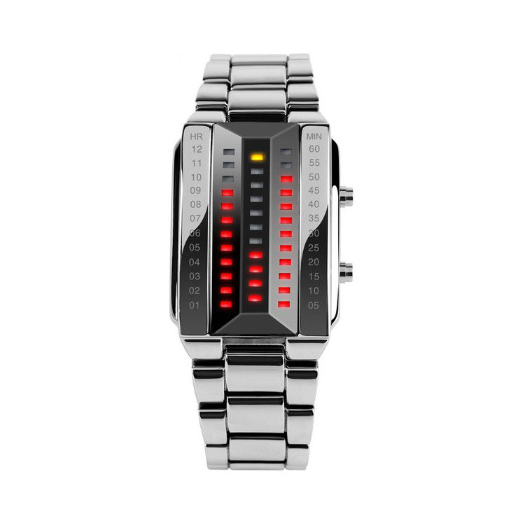 Футуристичний та привертаючий до себе увагу дизайн годинника SKMEI 1035 підкорить Вас з першого погляду. Бінарний циферблат переверне Ваше уявлення про годинник, відкриє Вам абсолютно новий погляд на час. Незважаючи на складність, користуватися годинником дуже легко і зручно. Час та дата відображаються на циферблаті за допомогою яскравих світлодіодів. Спробувавши одного разу SKMEI 1035, Вам вже не захочеться повертатися до класичних моделей.