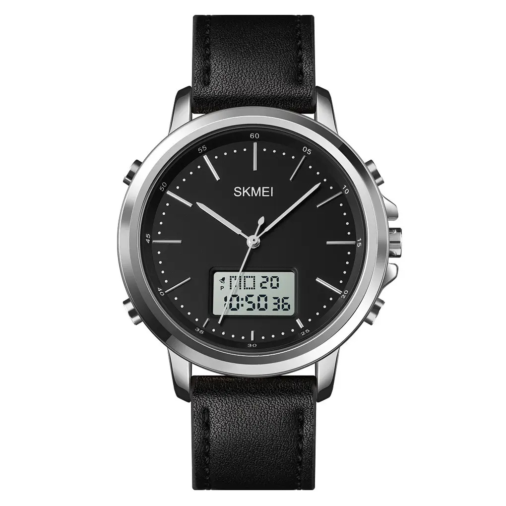 Чоловічі наручні годинники SKMEI 1652 - це стильний сучасний аксесуар. Незважаючи на те, що годинники виконані в класичному стилі на їхньому циферблаті гармонійно поєднуються аналоговий та цифровий способи відображення часу. Невеликий цифровий екран знизу циферблата крім часу відображає місяць і поточне число, а також дозволяє запустити ряд вбудованих функцій.