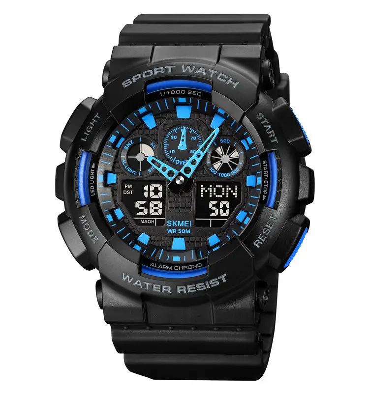 SKMEI – наручний тактичний годинник моделі 1832 з комбінованим циферблатом (аналоговий суміщений з електронним). Міцний водозахищений корпус із полікарбонату (50 м, можна мити руки та плавати на мілководді, але не пірнати), нічне підсвічування, повний календар, будильник, секундомір, світовий час – набір функцій як для цієї цінової категорії вражає. Скло злегка втоплено в корпус з метою захисту при випадкових ударах і падіннях. годинник можна налаштувати незалежно від електронного. У годиннику встановлено точний кварцовий японський механізм.