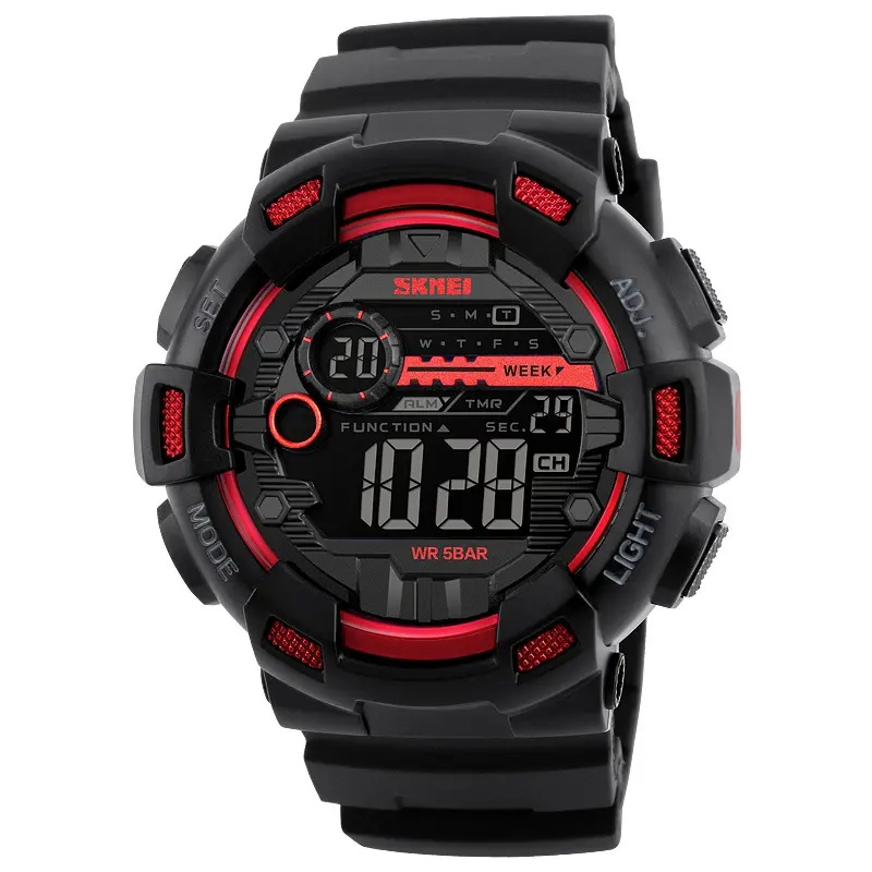 Корпус виконаний із міцного полікарбонату, який надійно захищає механізм від пошкоджень під час удару або падіння. Задня кришка циферблата з нержавіючої сталі надійно захищає механізм, а нанесене на неї фірмове гравіювання є відмінною рисою годинника SKMEI. Загартоване акрилове скло успішно протистоїть появі подряпин і тріщин у процесі тривалого носіння.