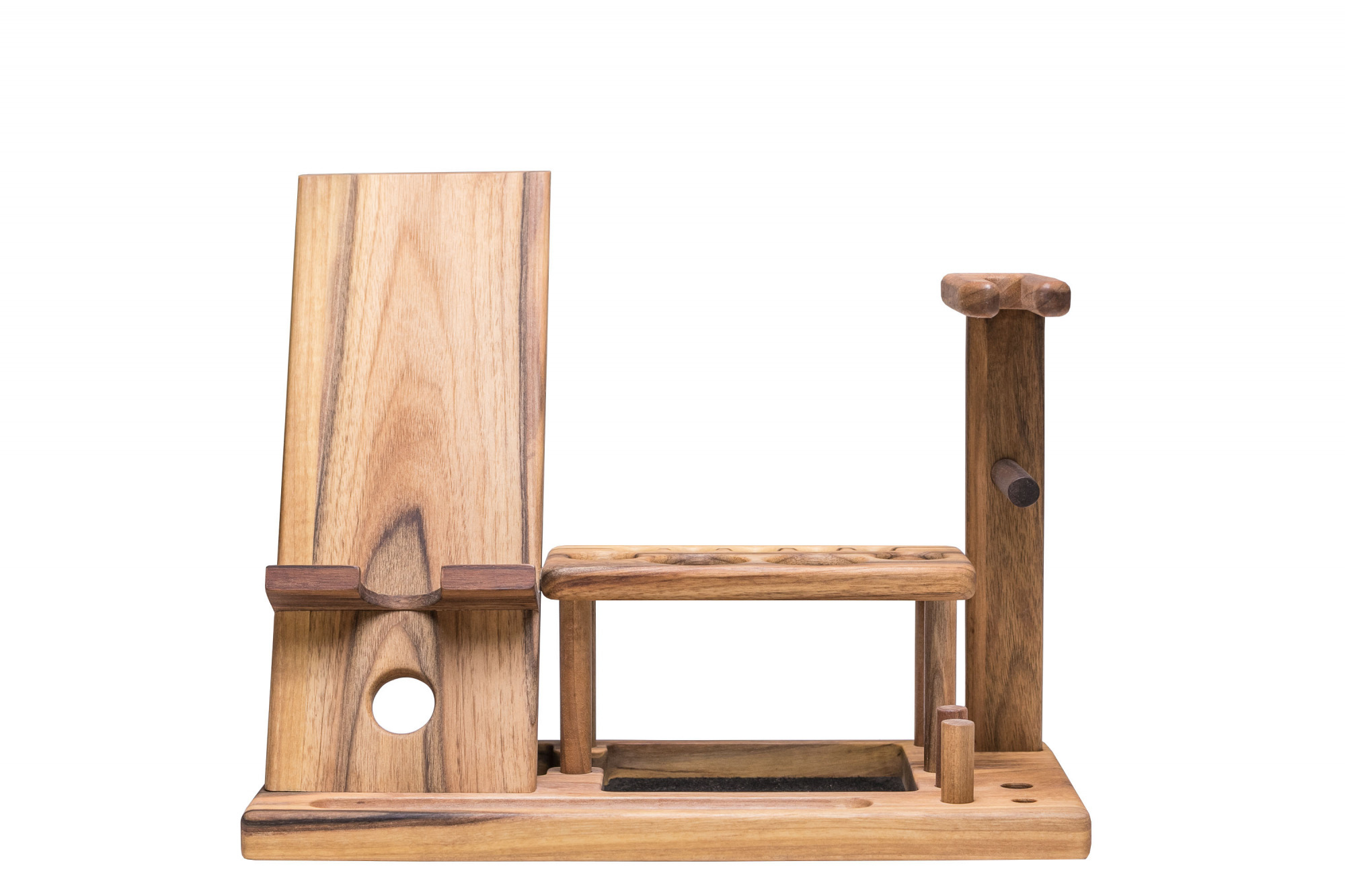 У відділі для гаманця/окулярів/ключів під годинником вклеєно чорний фетр, який надає додаткової індивідуальності цьому органайзеру. За Вашим бажанням килимок може бути іншого кольору або його може не бути взагалі. Ідеально підходить для пристроїв завтовшки до 17 мм, заввишки до 200 мм та завширшки до 100 мм.