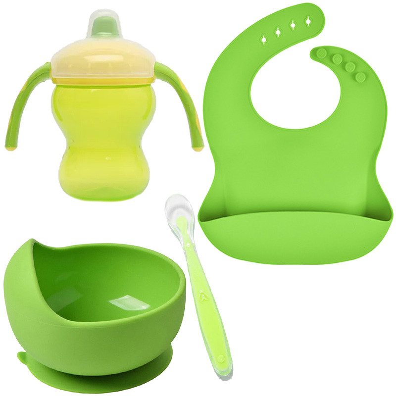 Набір силіконового посуду, розроблений та створений з урахуванням усіх вимог мам для годування дітей, складається з предметів: 1. Кругла тарілка на присосці для перших страв 2. Силіконовий слинявчик з регульованою застібкою та кишеню має ряд переваг та переваг перед іншими видами дитячого посуду: 1.Посуд з харчового силікону не б'ється і не має запаху 2. Представлений набір посуду має потрібні вигини для зручності при експлуатації 3.Посуд виготовлений з харчового силікону та відповідає всім міжнародним стандартам якості 4. Посуд можна стерилізувати і мити в посудомийній машині. 5.Силиконовий посуд можна використовувати в духовці, в пароварці або в НВЧ. 7.Весь посуд зберігає свій первісний вигляд протягом усього терміну експлуатації. Тарілочка кругла силіконова на присосці, її достатньо, як для початку першого прикорму так і для подальшого годування дитини. Слюнявчик - незамінна річ під час годування малюка. Максимум комфорту для дитини та мінімум прибирання для мами. Компактний та зручний у використанні для дому, дитячого садка, поїздок, прогулянок. Не потребує прання. Нагрудник достатньо протерти ганчіркою або серветкою. Кишенька для уловлювання пролитої їжі відмінно захищає одяг від забруднень. Ложечка з харчового силікону з дерев'яною ручкою – це ідеальне рішення для початку підгодовування. Зручна і акуратна ложечка з цього набору не зашкодить ніжні ясна, що ще не зміцніли, і перші зубики малюка навіть при натисканні. Поильник для дітей Має кришку або ковпачок для запобігання проливанню рідини, а також ручку для зручного утримання. Поільник виконаний з ХАРЧОВОГО ПЛАСТИКА або PP. Одним із найбільш використовуваних видів пластику вважається поліпропілен (РР). Поліпропілен характерний: • високою температурою плавлення; • нейтральний при взаємодії з рідинами, кислотами тощо (тому безпечний для продуктів харчування); • стійкий до навантажень. Поліпропілен ідеальний для створення міцних виробів, починаючи від автомобільних захисних деталей і закінчуючи медичними інструментами та спорядженням. Він широко використовується для пакування харчових продуктів, від дитячого харчування до медпрепаратів. Наша рекомендація: перед використанням промити теплою водою з додаванням нейтрального миючого засобу. Про різницю у кольорі: Всі товари зроблені на натуральних фотографіях. Через різні монітори та освітлення під час зйомки, факторів навколишнього середовища тощо, є невелика різниця в кольорі, яка об'єктивна і її не можна уникнути! Хроматична аберація не є проблемою якості.
