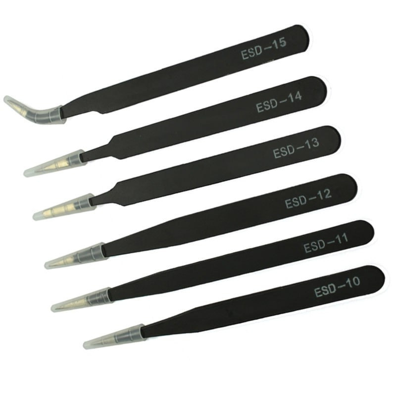 Набір пінцетів з нержавіючої антистатичної сталі призначений для роботи з дрібними деталями ремонтом телефонів, фіксації годинника, електроніки, ювелірних виробів, а також для лабораторної роботи та багато іншого. У набір входять 6 пінцетів, що дозволяє підібрати потрібний інструмент для роботи.