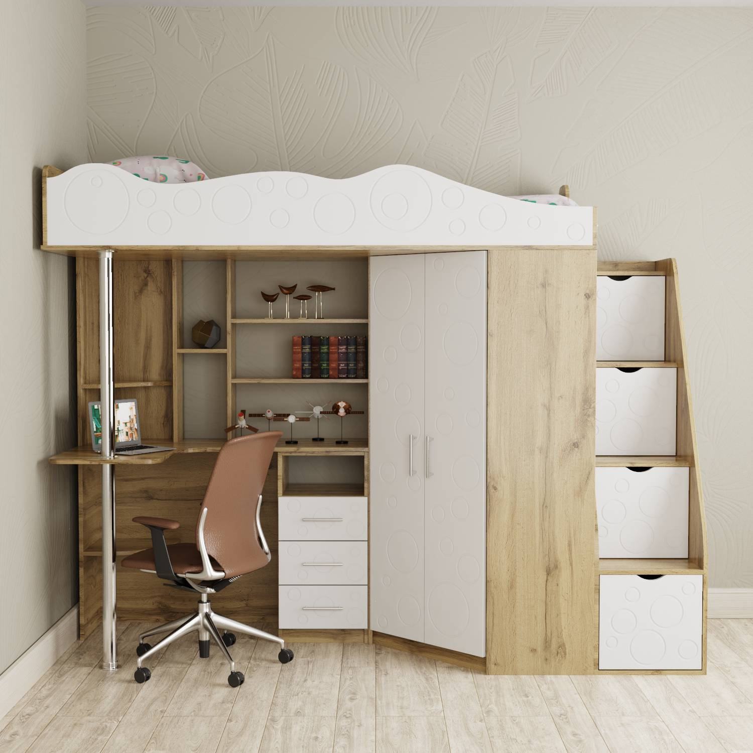 Якщо ви цінуєте компактні та функціональні рішення, які при мінімумі займаного місця забезпечують максимум комфорту, то Ліжко-горище Binky DS 37А підійде як найкраще! Адже ці меблі для дитячої кімнати вирішують весь спектр задач від створення зручного спального місця і робочої зони до організації зберігання безлічі речей. В одному, ретельно продуманому комплекті, є і шафа, і робочий стіл, і тумба, і книжкові полиці, і місткі висувні ящики, і, звичайно ж, ліжко!