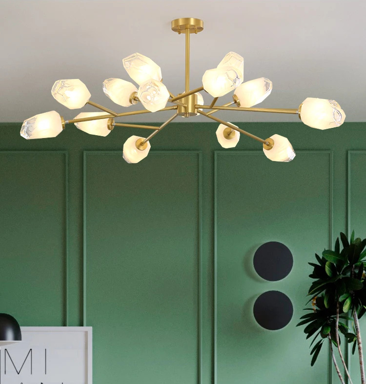 • Дизайн: Елегантна конструкція з багатогранними скляними елементами та золотистою обробкою створює розкішний та сучасний вигляд, що відразу привертає увагу.