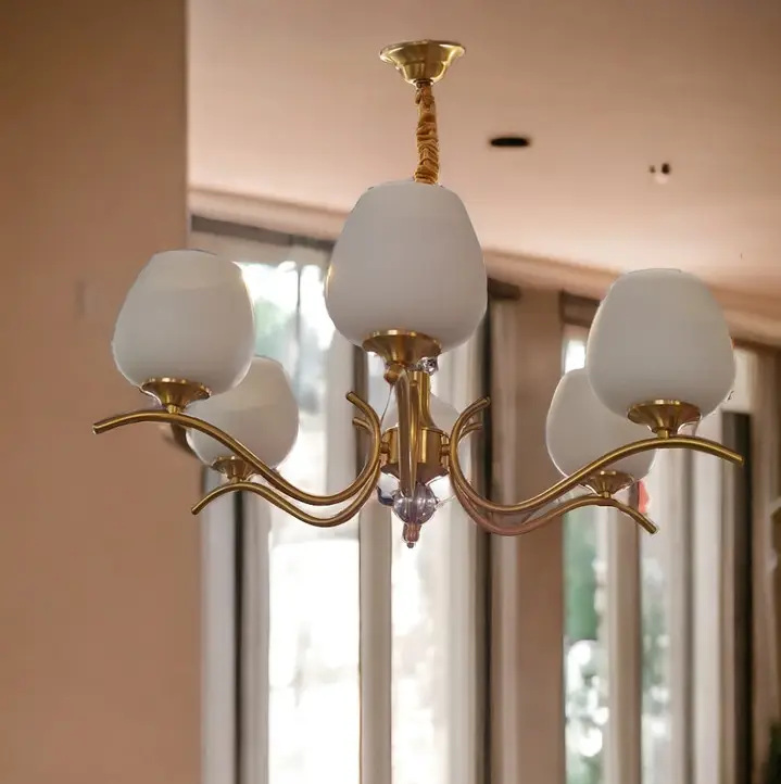 Описание Світлодіодна люстра No Brand Тюльпан 5034 Золотистий 5 плафонів
