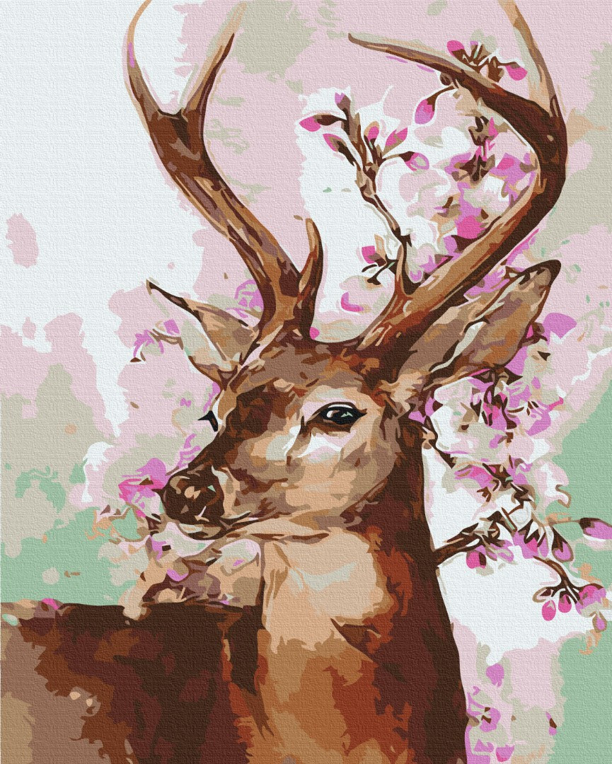 Описание Картина за номерами Brushme Олень та гілка сакури 40х50 см Різнокольоровий BS258