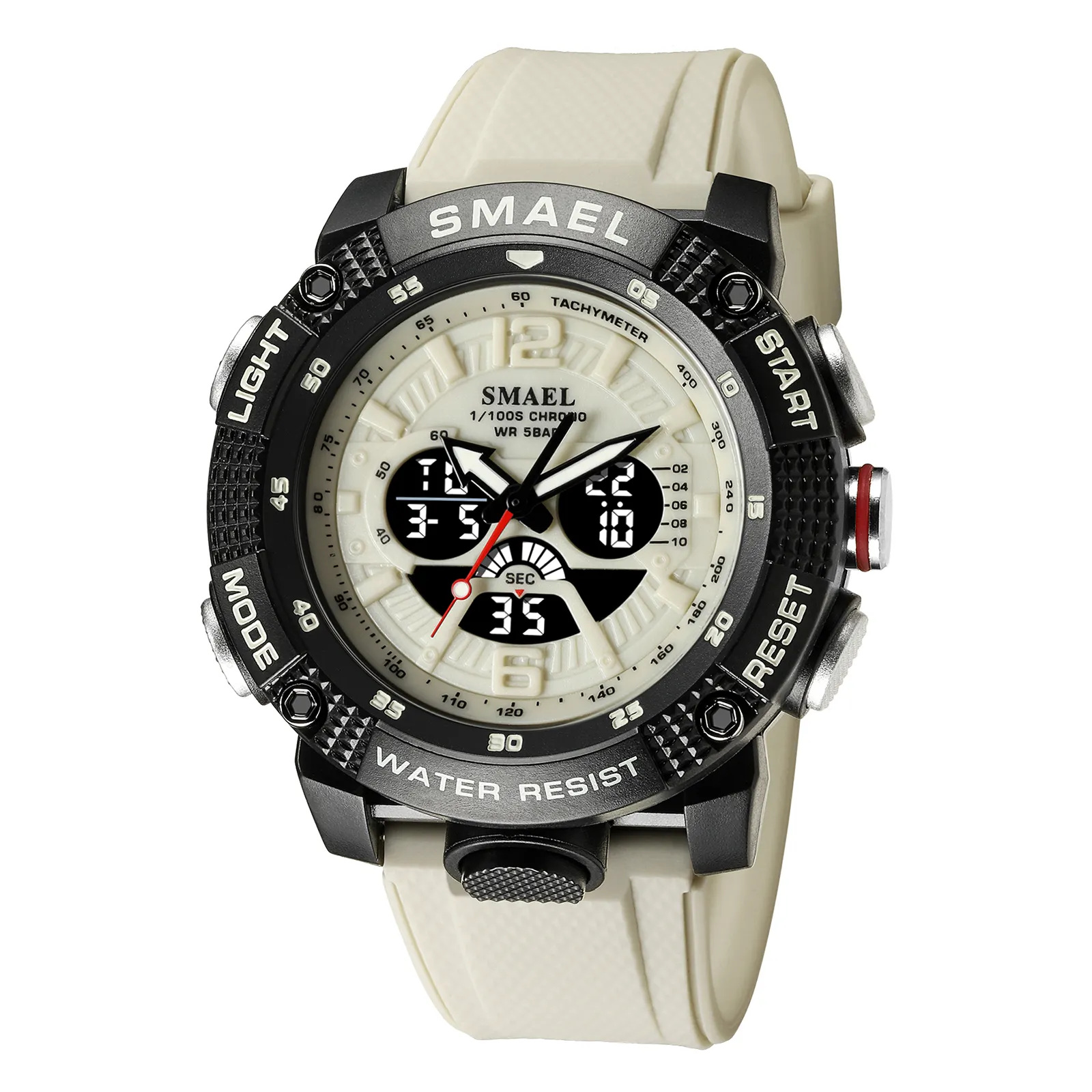 Поєднання аналогового та цифрового дисплея надає годиннику унікального вигляду. Цифровий функціонал включає будильник і секундомір, що робить цей годинник ідеальним для спорту та повсякденного життя.