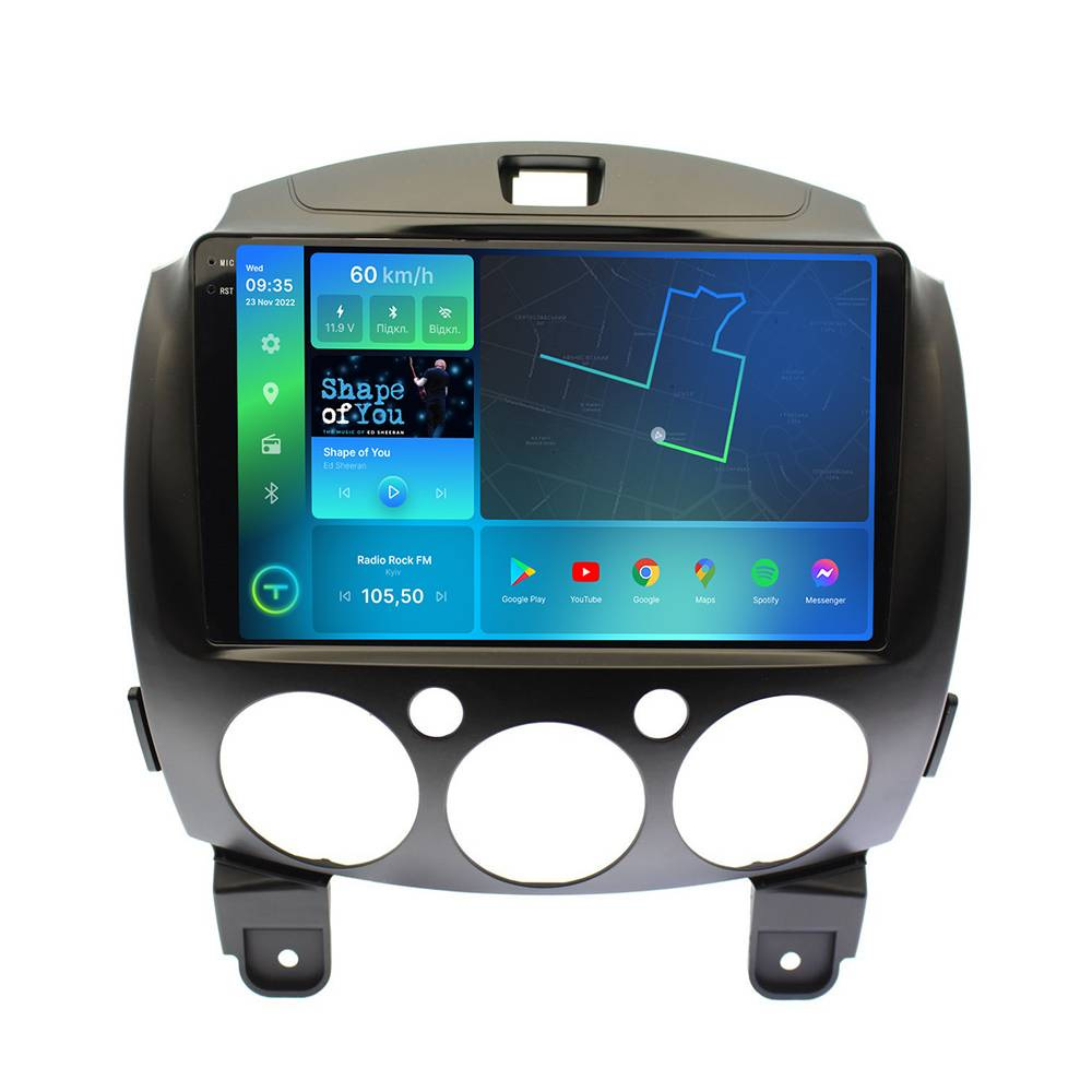 Цифрова магнітола, дизайн якої повністю розроблений під особливості салону вашого автомобіля, працює на ОС Andriod, підтримує інтернет-підключення Wi-Fi, 3G/4G, систему контролю тиску в шинах TPMS, систему кругового огляду 360 градусів, а також Carplay/Android Auto та відповідає найвищим вимогам шанувальників музики під час поїздок на авто.