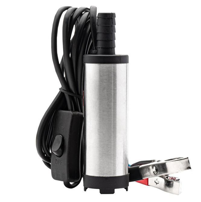 УВАГА! Насосом суворо заборонено перекачувати бензин, спирт та інші легкозаймисті речовини! Не допускається робота на холостому ходу та перекачування насухо. Занурювальний дизельний насос 12 В 38 мм - універсальний насос для перекачування Занурювальний насос призначений для перекачування легких рідин, таких як дизельне пальне, гасу, води. Двигун насоса охолоджується рідиною, що перекачується. Застосування цього насоса може бути у вантажних автомобілях, тракторах, суднах, електрогенераторах та інших транспортних засобах, які використовують дизельне пальне для заповнення або випорожнення резервуарів та човнів. Він також може бути використаний як у майстернях, так і в домашніх умовах. Можливість підключення блока живлення до автомобільного акумулятора дозволяє використовувати його навіть у дорожніх умовах. Цей насос ідеально підходить для використання у вантажівках, тракторах, човнах, генераторах та інших транспортних засобах, які використовують дизельне пальне. Технічні дані: Потужність: 12 В Потік: 12 л/хв Діаметр: 38 мм Висота: 145 мм Висота підйому: 2 м Діаметр виходу насоса - 16 мм