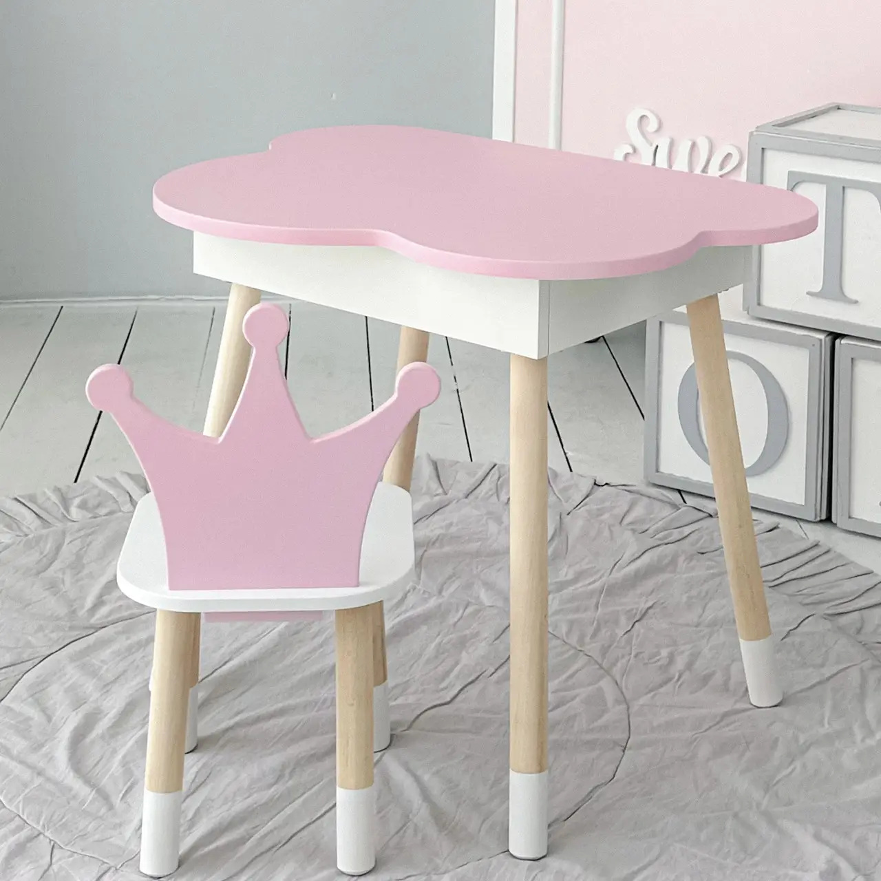 Столик дитячий No Brand Хмара з нішою та стільцем Корона Біло-рожевий (2389196722)