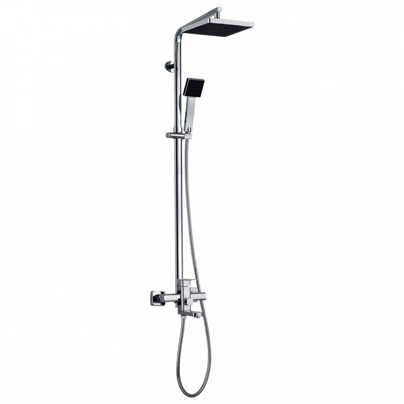 Стійка для душу виконана в дизайнерському стилі "хай-тек", що однозначно додасть затишку і вишуканості у вашій ванній кімнаті. Виготовляється із латуні з хромованим покриттям, завдяки чому стійка буде працювати тривалий період часу. У комплект входить штанга, тримач для лійки і сама лійка з шлангом, змішувач, а також верхній душ. Душова стійка - відмінне рішення для будинку або готелю. Довжина штанги: 115 см. Довжина шланга: 150 см