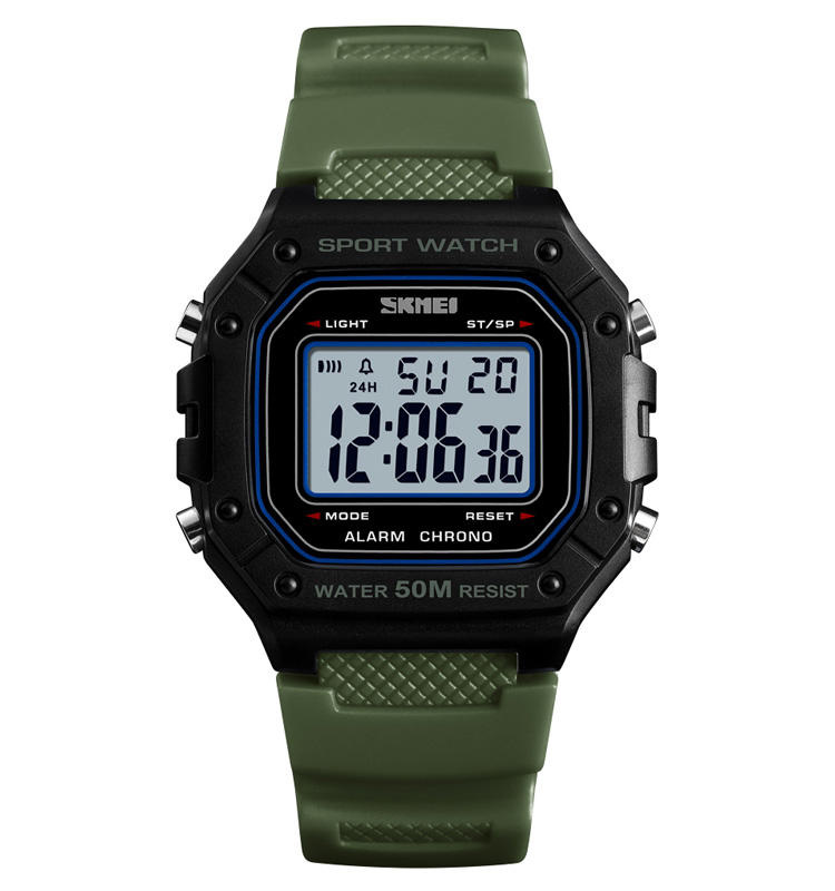 Skmei 1496A - стильний годинник від відомого виробника Skmei. Їхній універсальний дизайн поєднує в собі спортивні та повсякденні риси. Електронний циферблат пропонує безліч функцій, включаючи другий часовий пояс, будильник, секундомір та календар. Водонепроникний корпус робить їх надійним аксесуаром у будь-яких умовах. Підсвічування забезпечує зручність у темну пору доби. Годинник відображає години, хвилини, секунди, число та день тижня. Їхня легка вага та зручний каучуковий ремінець роблять їх ідеальним вибором для активного способу життя.