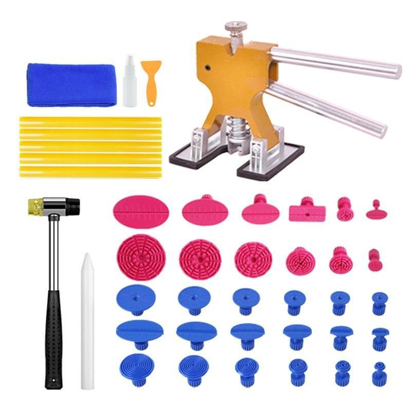 Набір для видалення вм'ятин 41 в 1, є незамінним інструментом для виправлення вм'ятин на кузові автомобіля. Цей набір забезпечує швидке та ефективне видалення вм'ятин без залишення слідів. Він ідеально підходить для використання в гаражі або в автомайстерні.