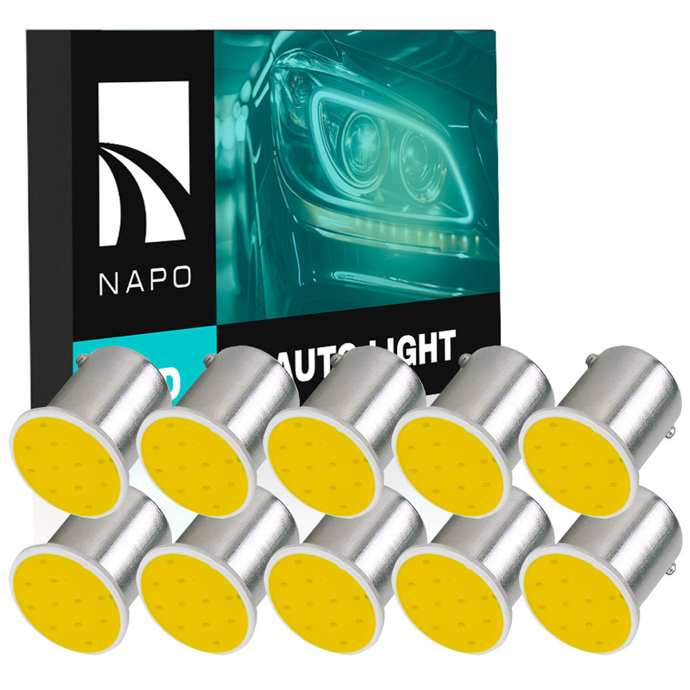Комплект світлодіодних ламп NAPO LED P21W - це високоякісне рішення для поліпшення освітлення вашого автомобіля, що забезпечує яскраве світло і тривалий термін служби.