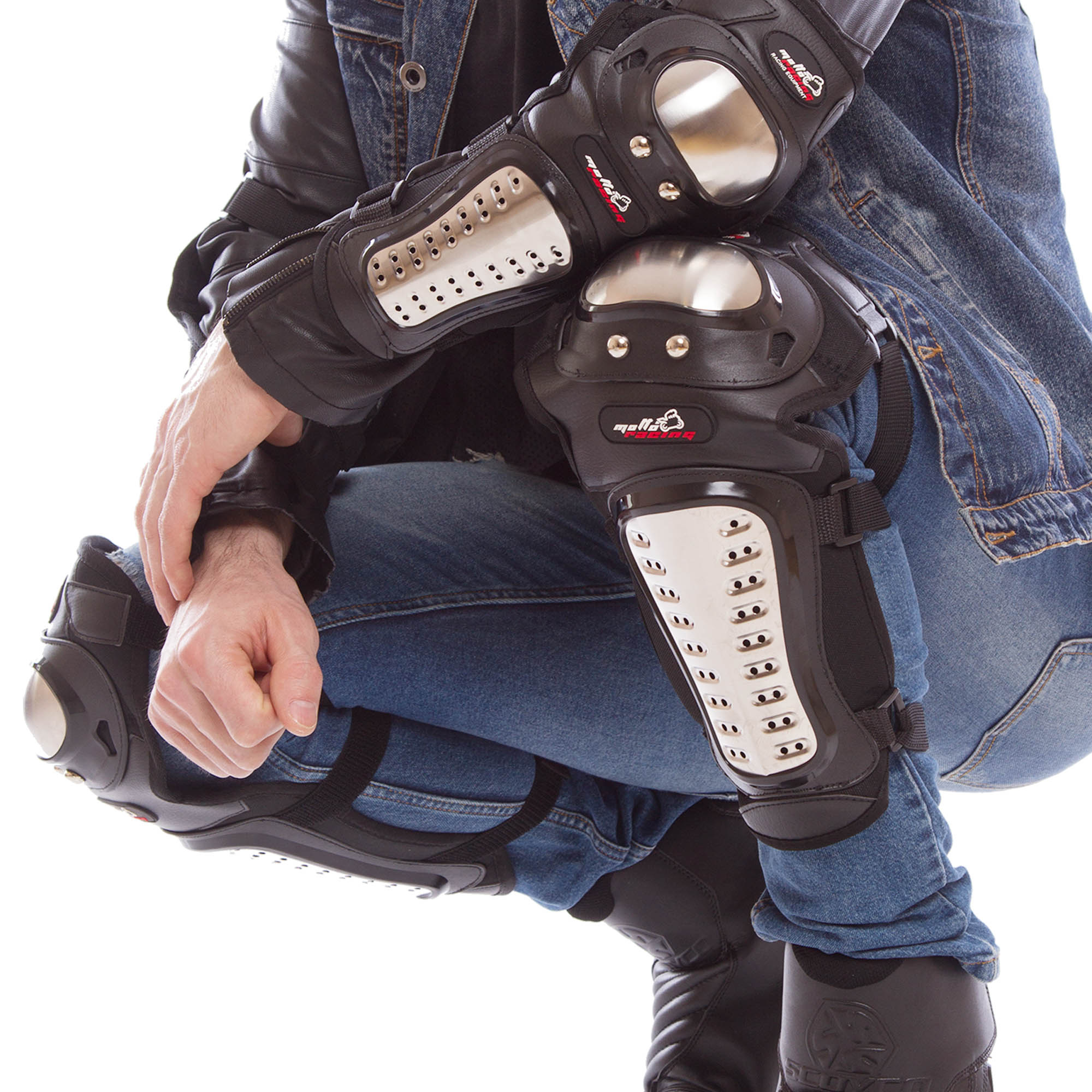 Комплект мотозащиты колено голень + предплечье локоть 4шт SP-Sport MAD RACING HG-01 Черный