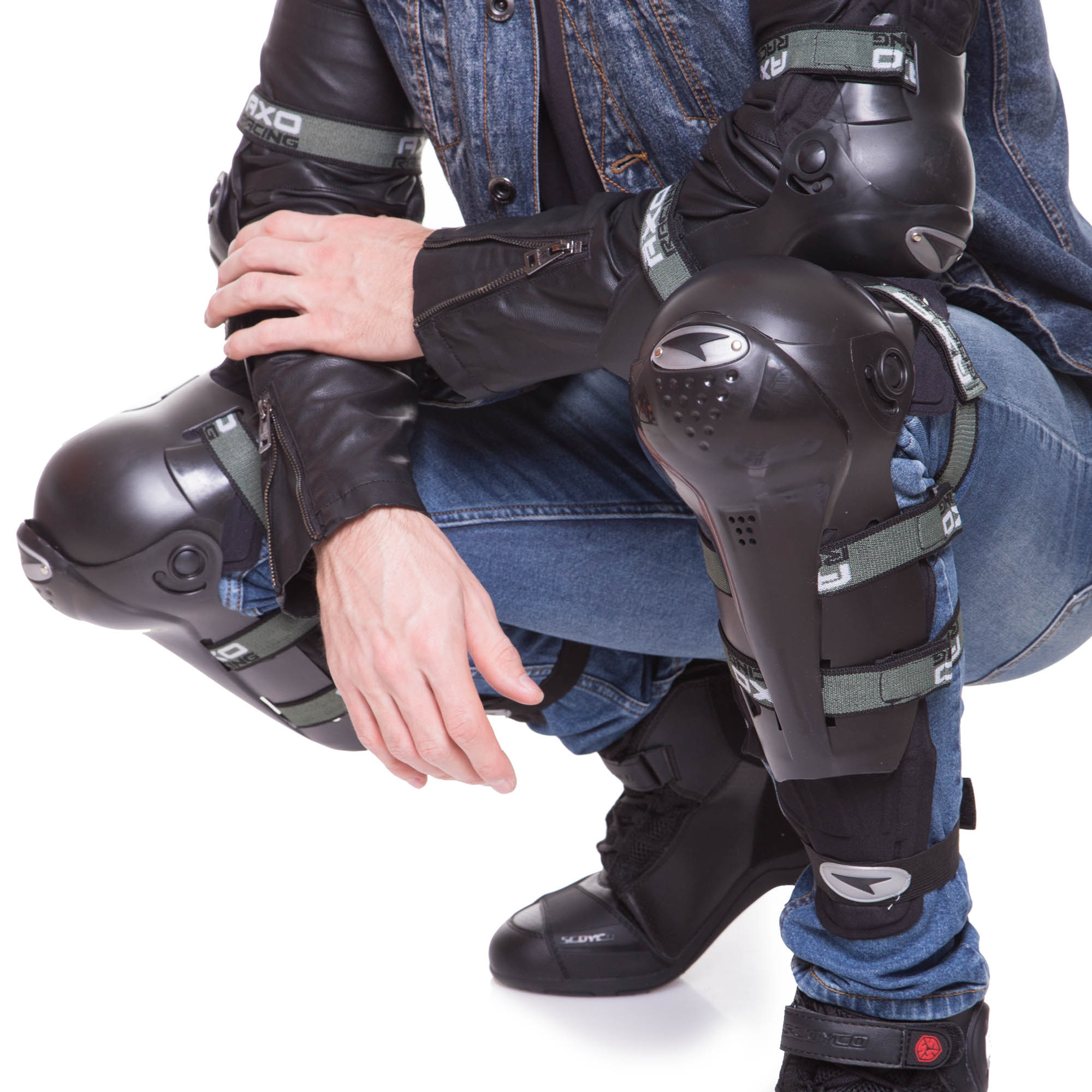 Комплект мотозащиты колено голень + предплечье локоть 4шт AXO M-4575 Черный
