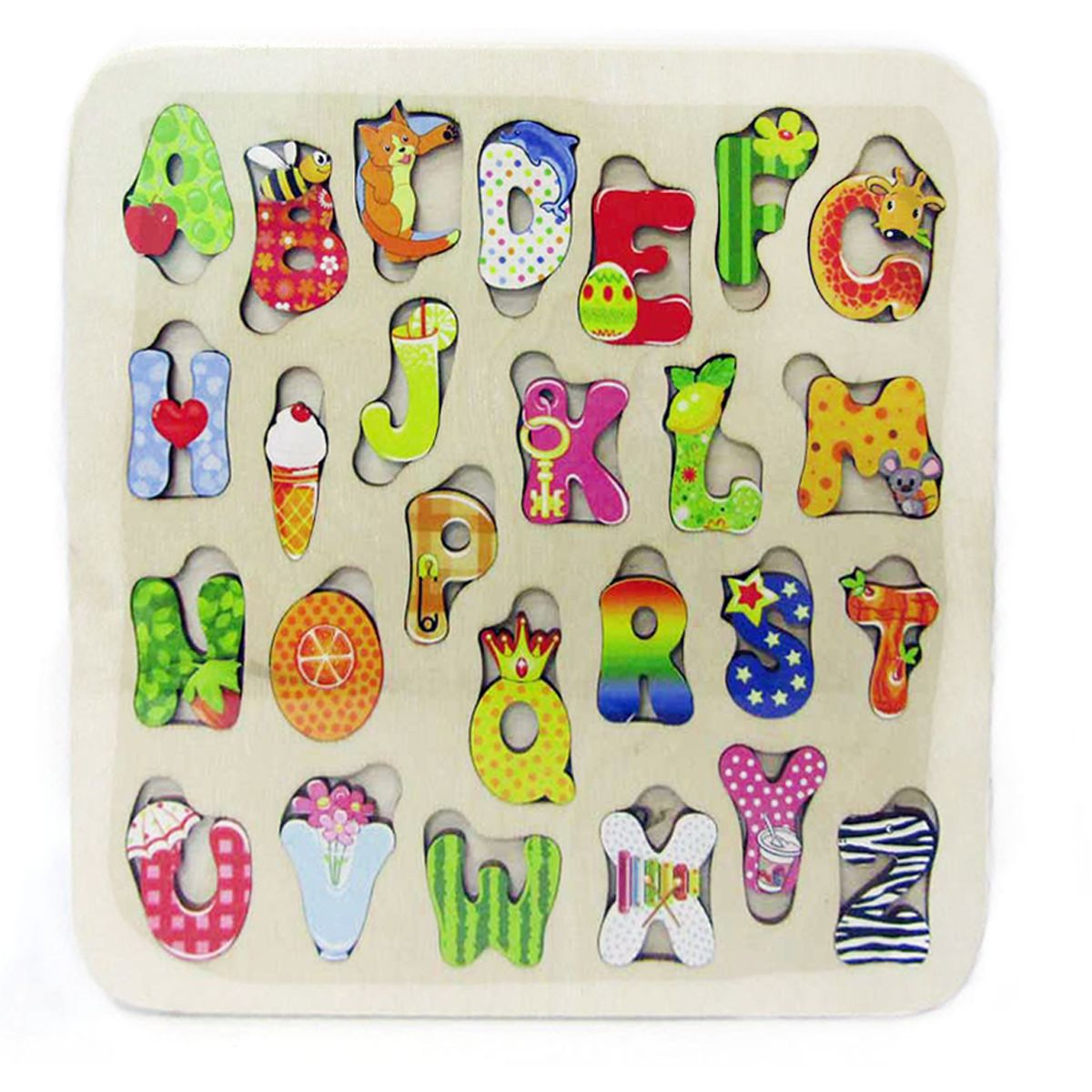 Деревянный пазл "Английский алфавит", с рисунками. Набор состоит из деревянной рамки с вырезами и, соответсвующиих им, букв английского алфавита. Подходит для изучения английского алфавита, цветов и форм. Развивает мелкую моторику, внимание, логическое мышление и память.
