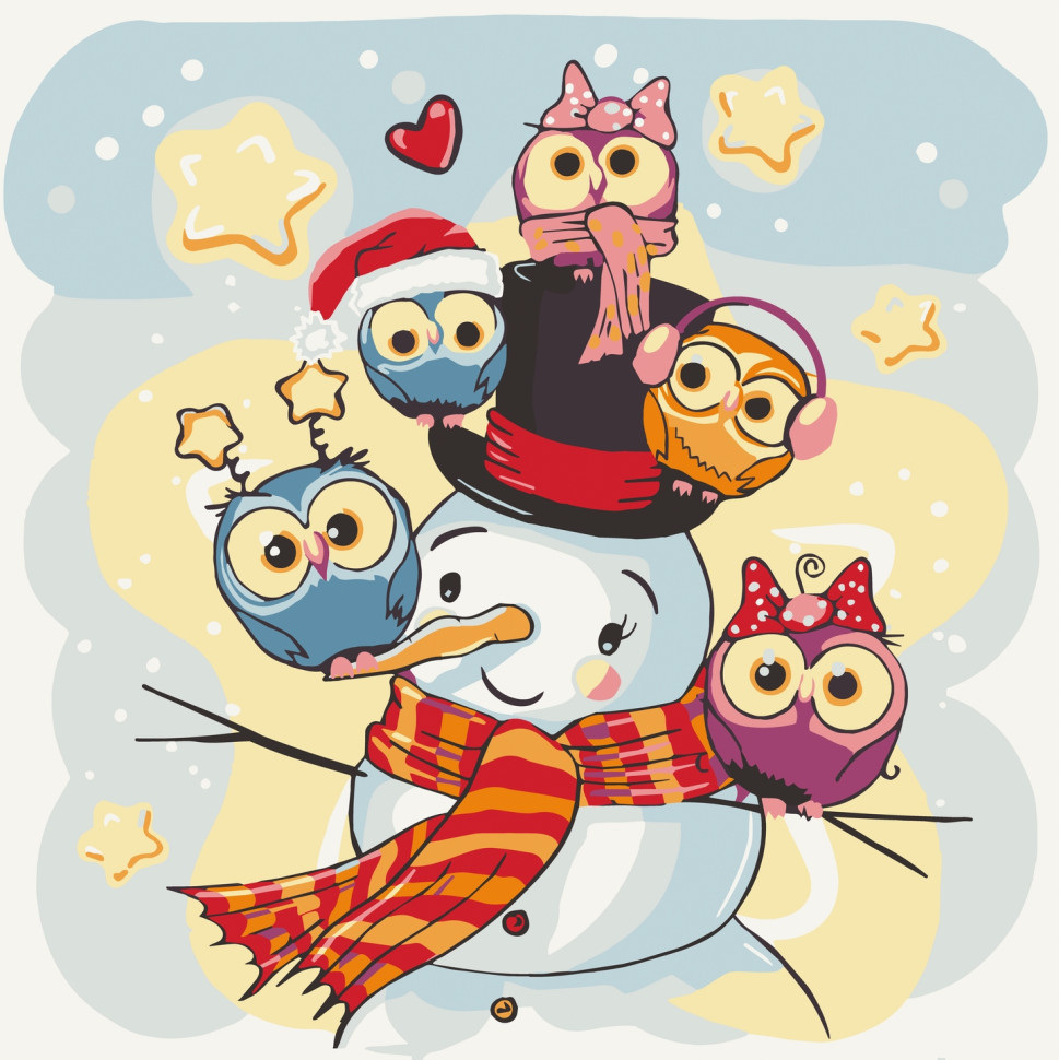 Роспись на холсте Снеговик с совами Art Craft 15550-AC 30х30 см