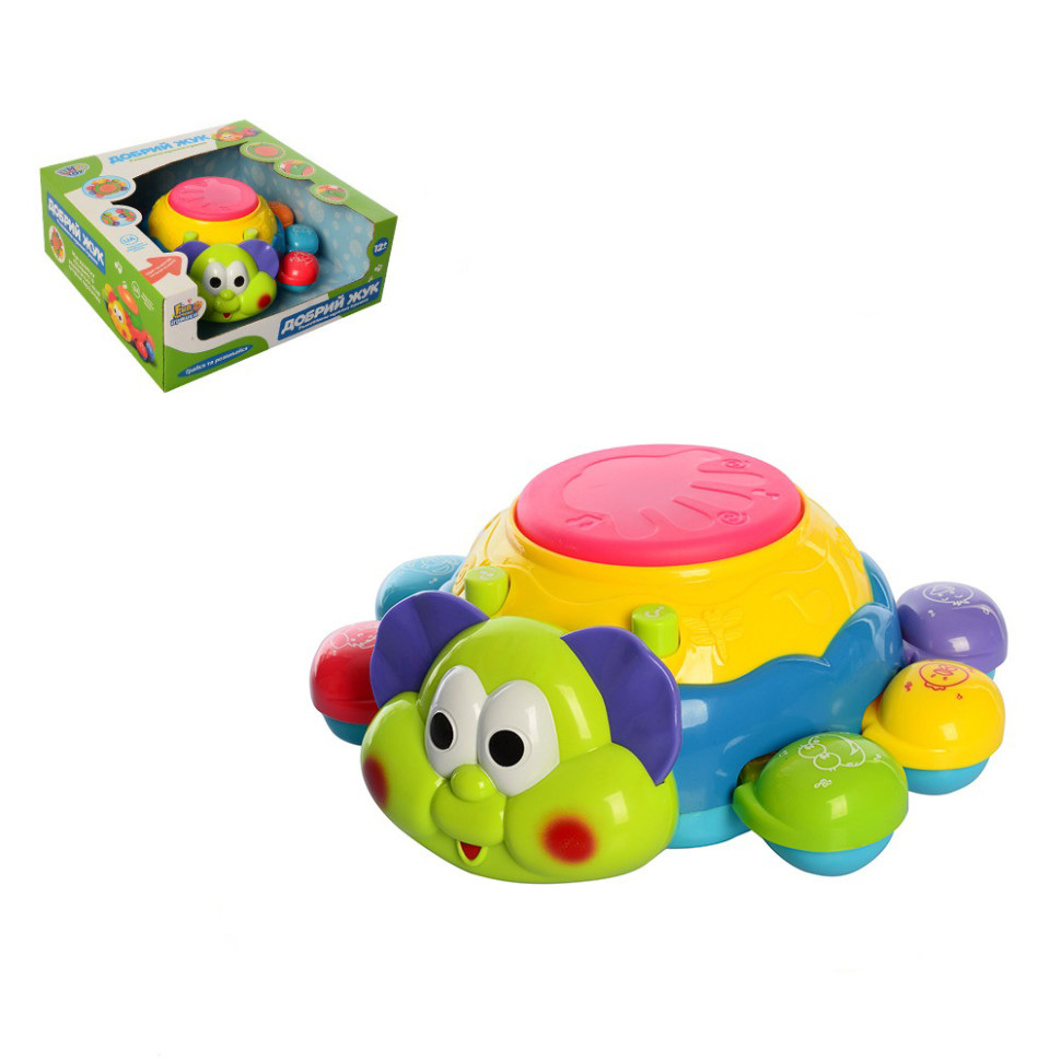 Музыкальная игра 7259 UA Жук имеет очень привлекательный дизайн. Жук 7259 UA разноцветный, очень яркий. Изготовлен он из качественного пластика. У него симпатичная внешность, а ещё он имеет массу замечательных функций и даже может кое-чему научить. Например, с его помощью можно будет выучить основные цвета и запомнить звуки, которые издают некоторые животные. Для этого надо просто нажимать на лапки жука. А если нажать на его спинку, то можно услышать звучание музыкальных инструментов. Ещё можно ознакомиться с буквами и цифрами. А ещё жучок может танцевать! Причём во время движения мигает подсветка. А если он встретит препятствие, то развернётся в другую сторону. Работает от батареек. Возраст: 1+ Размер игрушки: 19 сантиметров Размеры упаковки: 25х25х10 сантиметров Производитель: Китай