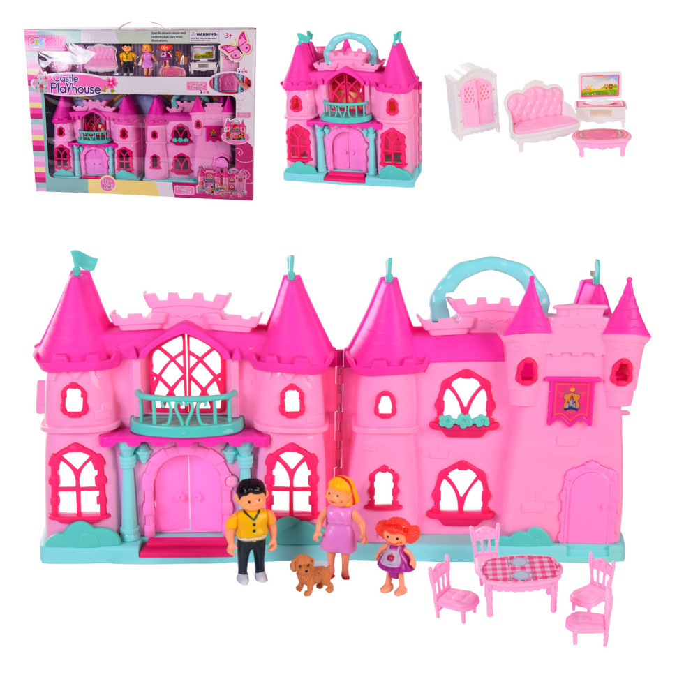 Красочный и милый домик с маленькими куклами обязательно пригодится для развивающих сюжетных игр. С ним так легко приходят новые идеи, интересные события и приключения. В домике есть два этажа, миниатюрная мебель и аксессуары, играет приятная мелодия. Игры с маленькими фигурками развивают мелкую моторику и воображение. Можно играть с набором самостоятельно или с друзьями. Все детали изготовлены из крепкого и безопасного материала. Интерактивные функции работают с помощью батареек. В комплекте: - замок - 3 куклы - собачка - мебель Функции: - звук - свет Батарейки 2 шт. типа АА (в комплект не входят)