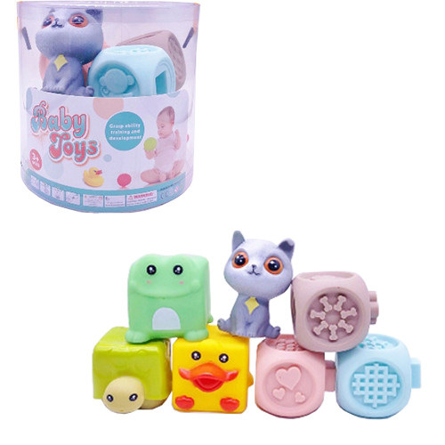 Развивающая игрушка для купания SCA97-2C ОСОБЕННОСТИ : Разнообразная форма способствует развитию тактильных ощущений и мелкой моторики малыша. Идеально помещаются в детскую ручку . Мягкие и приятные на ощупь. В наборе: 7 шт. Размер упаковки: 14,5х14х14,5 см.