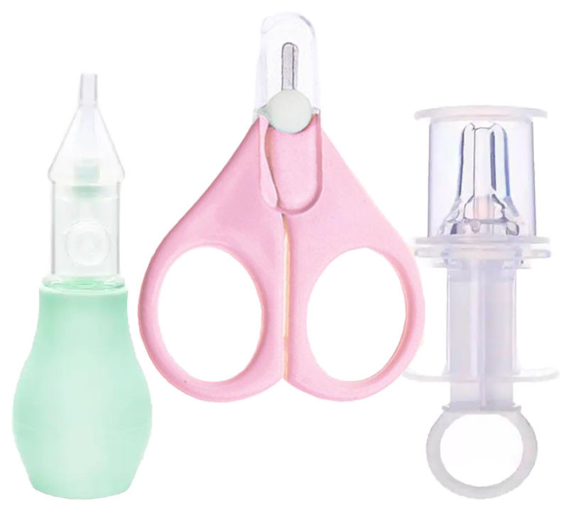 Маникюрные ножницы для новорожденных детей с колпачком Движения новорожденного крохи еще недостаточно сбалансированы, поэтому он легко может поранить себя собственными ноготками. Чтобы этого не произошло, необходимо регулярно стричь их с самого рождения. Тогда малыш сможет свободно изучать окружающий мир, без риска поцарапать свое лицо. Особенности: Ножницы оснащены короткими лезвиями с закругленными кончиками для большей точности движений и безопасности Удобный захват помогает легко пользоваться ножницами Материал: нержавеющей сталь, без содержания никеля С данными ножничками ухаживать за ноготками малыша легко и просто они сделаны с любовью для самых маленьких. Аспиратор - это идеальный продукт, когда ваш ребенок простудился. Помогает удалить выделение из носа ребёнка. Специальный наконечник, защищающий от раздражения нежной слизистой оболочки носа. Защита от обратного потока жидкости. Детский шприц-дозатор - предназначен для дозирования и безопасного ввода жидкостей детям. Емкость: капельница 10 мл, мерная чашка 20 мл. Характеристик шприца-дозатора Материал - жидкий силикон, полипропилен Размеры: длина - 13 см ширина - 3.9 см Вес: 33 г В комплекте защитный колпачок
