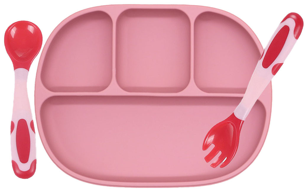 Детская четырех-секционная силиконовая тарелка и термочувствительная ложка-вилка 2Life 700 мл Розовый (vol-10239)